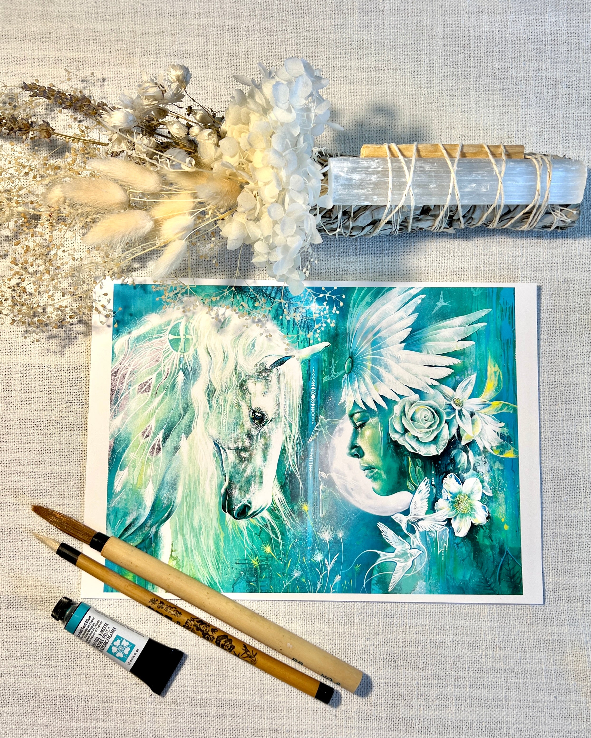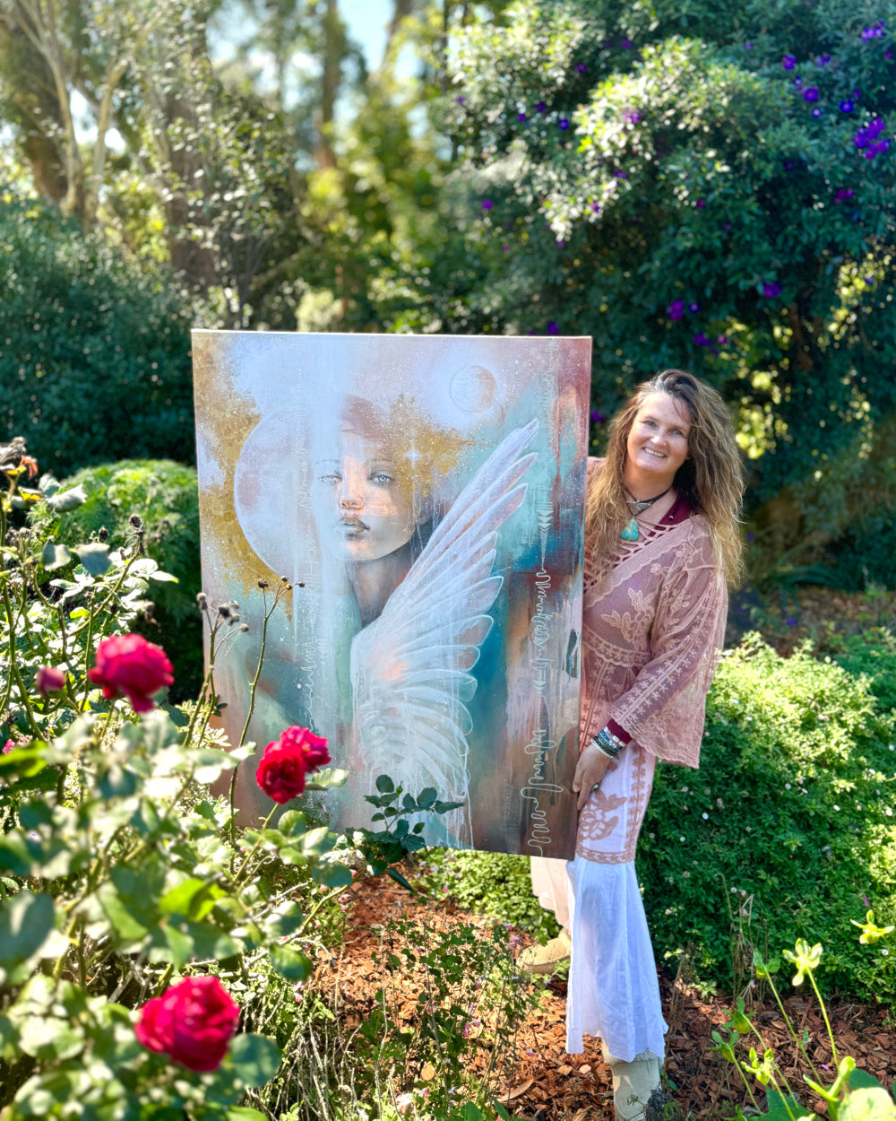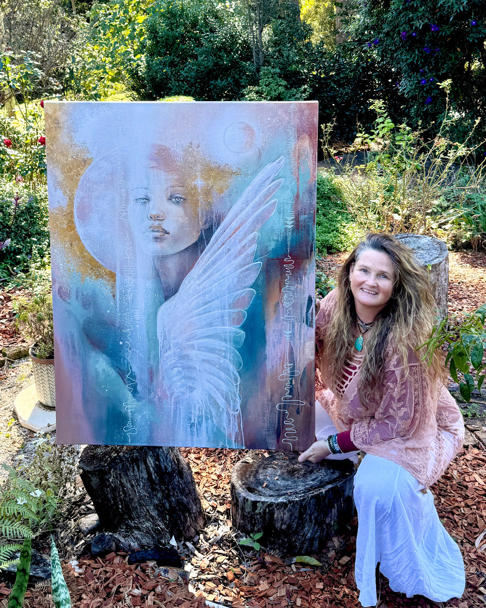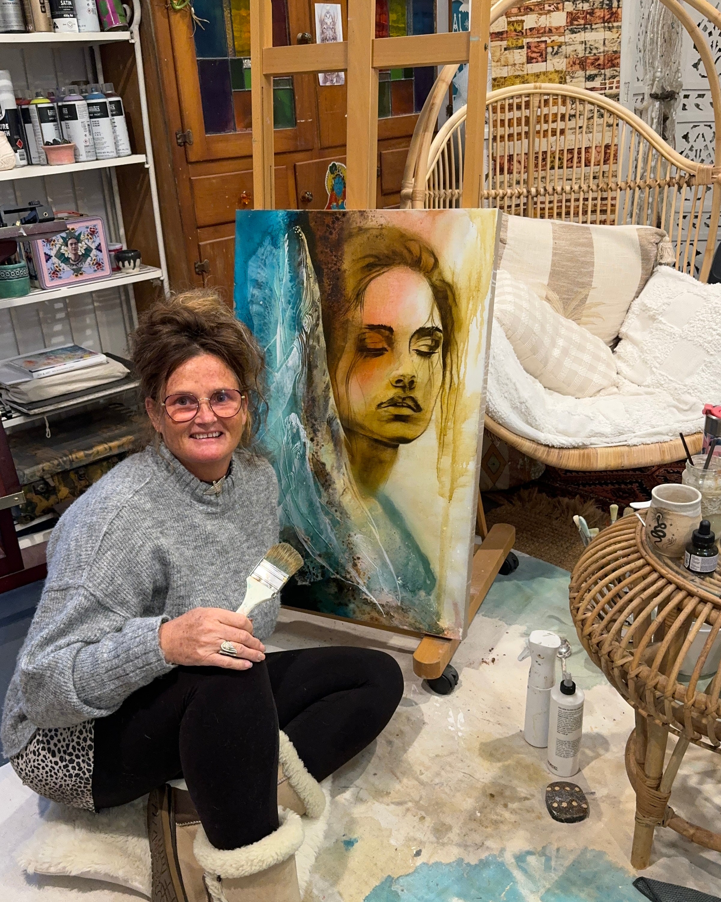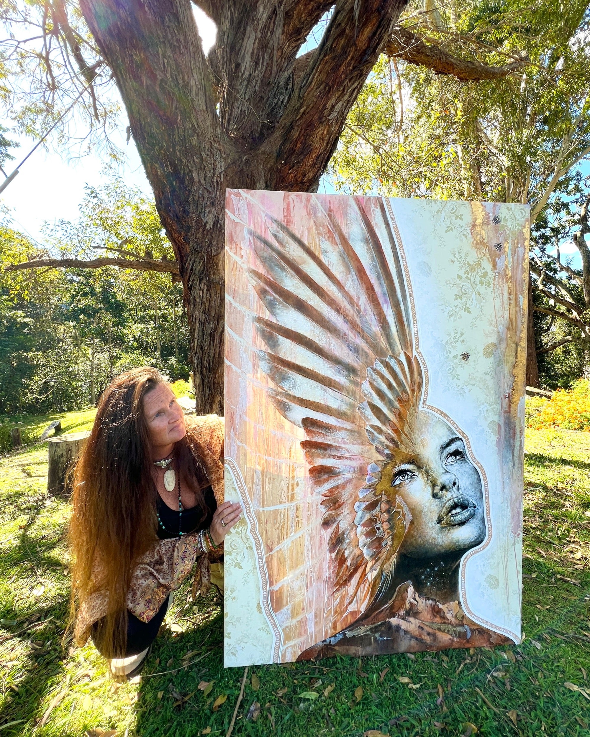 "I am living and creating in a beautiful beach home,nestled on Bundjalung Country, Byron Bay, this sacred space is also home to my Arthouse Gallery and Crystal Shop—a place where art, earth, and the stars intertwine. Here, surrounded by the ocean’s vastness and the earth’s quiet wisdom, I am continually inspired by the beauty that surrounds me.