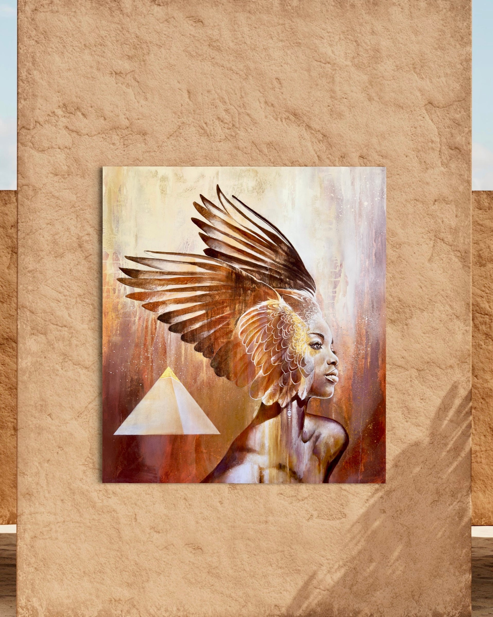 "I am the embodiment of resilience and grace. Like Isis, Sekhmet and Hathor, my wings unfurl to embrace the winds of change, and I soar above life’s challenges. I am uplifted by the strength of my ancestors and guided by the wisdom of the divine. My spirit is unbreakable, my heart is boundless, and my journey is etched with the codes of Khem.”